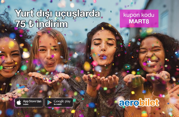 Aerobilet üzerinden, 10 Mart 2019 saat 23:00‘e kadar geçerli, sınırlı sayıda MART8 kupon kodunu kullanarak yurt dışı uçak biletlerinde 75 TL indirimi anında kullanabilirsiniz. Seyahatlerinizi bir an önce planlamaya başlayın; bu fırsattan yararlanın!