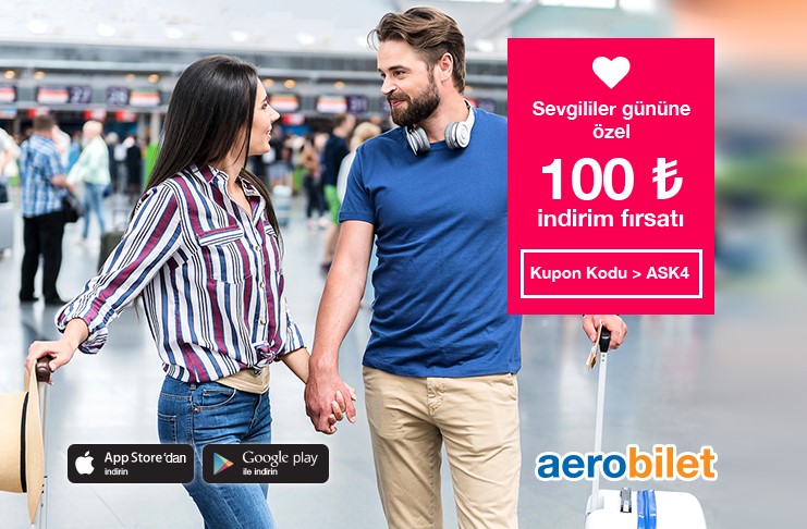 Aerobilet mobil uygulaması üzerinden, 14.02.2019 saat 23:00‘e kadar geçerli, sınırlı sayıda ASK4 kupon kodunu kullanarak yurt dışı uçak biletlerinde 100 TL indirimi anında kullanabilirsiniz. Seyahatlerinizi bir an önce planlamaya başlayın; bu fırsattan yararlanın!