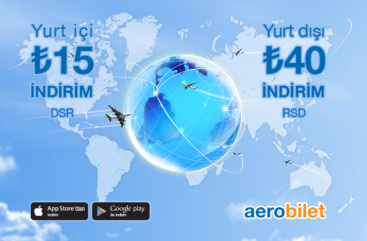 Yalnızca bugün (19.03.2018) saat 23.00’e kadar geçerli, sınırlı sayıda DSR kupon kodunu kullanarak yapacağınız yurt içi uçak bileti satın almalarında 15 TL, RSD kupon kodunu kullanarak yapacağınız yurt dışı uçak bileti satın almalarında ise 40 TL indirim sizleri bekliyor olacak. Kupon kodları ve kampanyanın sınırlı olduğunu unutmayın ve hemen biletlemelerinizi yapın! Aerobilet’in Kampanyalar sayfasından ilgili kampanyanın koşullarını okuyabilir ve kupon kodu kullanımı hakkında bilgi alabilirsiniz.